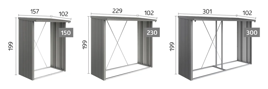Dimensions WoodStock® 300 : L300,7 x P102 x H199 cm, Volume 4 m3