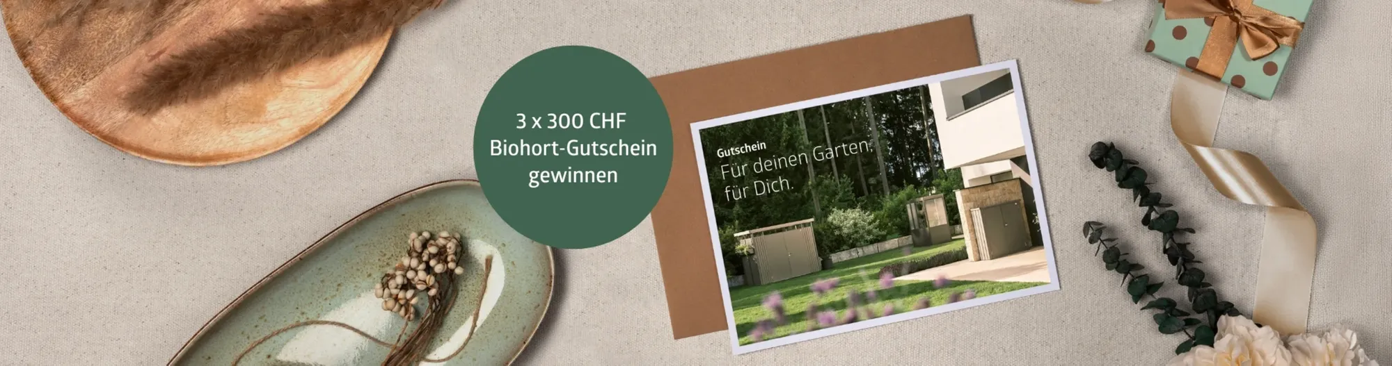 Melden Sie sich für den Biohort Newsletter an und sichern Sie sich die Chance auf einen von drei Biohort-Gutscheinen im Wert von je CHF 300 – perfekt, um Garten, Terrasse oder Balkon zu verschönern.