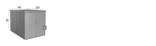 | Dimensions extérieures L x P x H (en cm) | Dimensions intérieures L x P x H (en cm) | Dimensions des fondations L x P (en cm) | Poids (en kg) | Code EAN argent métallique | Code EAN gris foncé métallique |