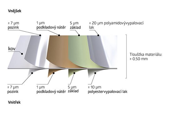 Biohort používá pro své výrobky ocelový pozinkovaný plech s dodatečným "smaltováním kamen" polyamidem.