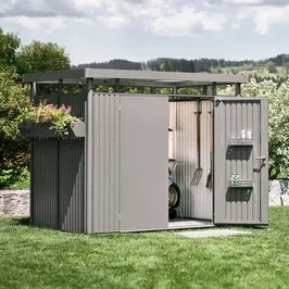 Sie wollen Ihre Mülltonne blickdicht verstauen und gleichzeitig die Autoreinigungsmittel geordnet aufbewahren? Mit dem Regale-Set für den Biohort StoreMax 190 schaffen Sie Platz für Kleines und behalten gleichzeitig Platz für Großes. Das StoreMax 190 Regale-Set unterstützt Sie Großes und Kleines gemeinsam sauber und ordentlich zu lagern. Es besteht aus 2 feuerverzinkten Stahlböden (72 x 24,5 cm), 2 Konsolen und 2 Regalstehern.