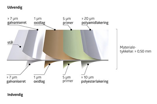 Biohort anvender galvaniserede stålplader med en ekstra "ovnlakering" med polyamid til sine produkter.