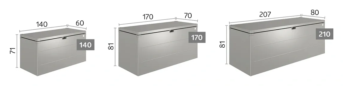 Tenga en cuenta que los arcones de almacenaje Biohort como el arcón de ocio, la caja para paquetería, el armario para la terraza Romeo, StoreMax, HighBoard, StyleBox y LoungeBox ofrecen un almacenamiento seguro contra la lluvia torrencial. Sin embargo, hay ranuras de ventilación para la circulación del aire. Las fundas de asiento, los cojines y las mantas absorben la humedad y, por lo tanto, no deben guardarse en los arcones en invierno por el riesgo de manchas de moho.