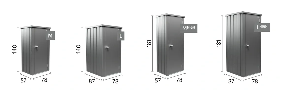Der Terrassenschrank Romeo ist nicht als Mülltonnen-Einhausung konzipiert, die Innenmaße der Gr. L gewährleisten jedoch die Unterbringung von zwei Stück 240 l Mülltonnen. Bitte beachten Sie jedoch, dass die Mülltonnendeckel nicht vollständig geöffnet werden können.