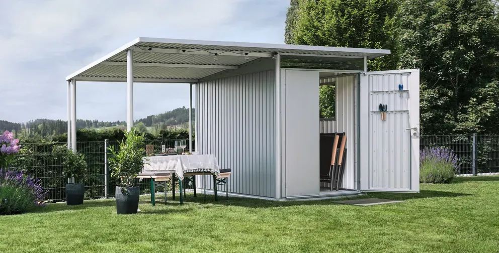 De AvantGarde berging combineert moderne architectuur met doordachte functionaliteit. Het nieuwe zijdak biedt extra overdekte bergruimte voor fietsen, tuingereedschap of brandhout.
