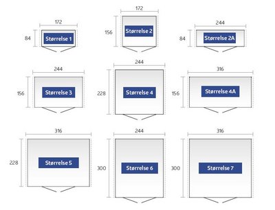 størrelse | Utvendige mål | Innvendige mål | Fundamentmål | Vekt | EAN-kode | EAN-kode | EAN-kode | EAN-kode |