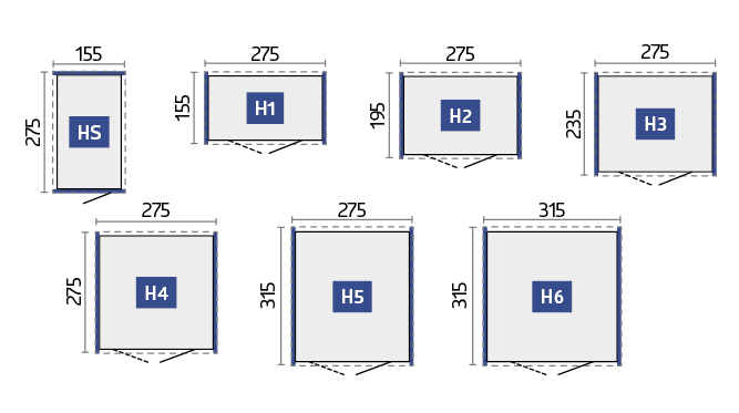 | H5 | 275 x 315 x 222* | 252 x 292 x 210 | 257 x 297 | 317,8 | 9003414 83060 8 | 9003414 88060 3 | 9003414 84060 7 |