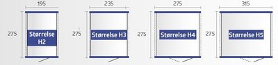 | Side tak størrelse H4 (B 282 x L 275 cm) | 9003414 83056 1 | 9003414 88056 6 | 9003414 84056 0 |