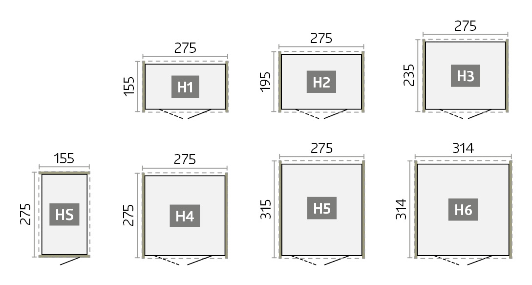 Specific dimensions in terms of garden shed width, depth and height are not possible because of serial production.