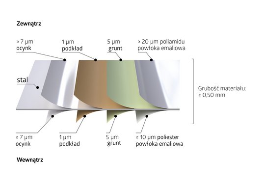 Biohort wykorzystujew swoich produktach ocynkowaną blachę stalową z dodatkowym "emaliowaniem piecowym" poliamidem.