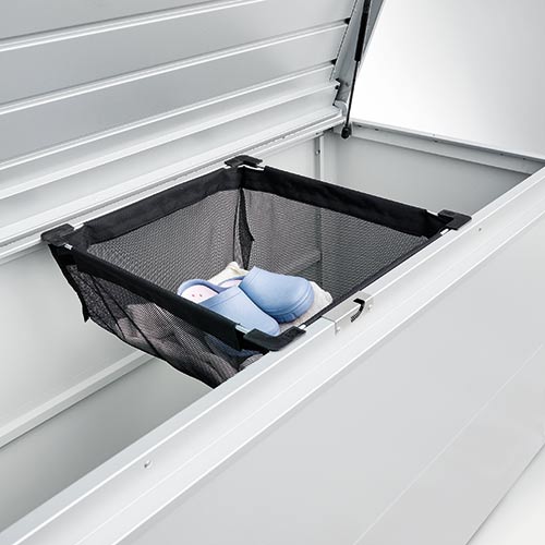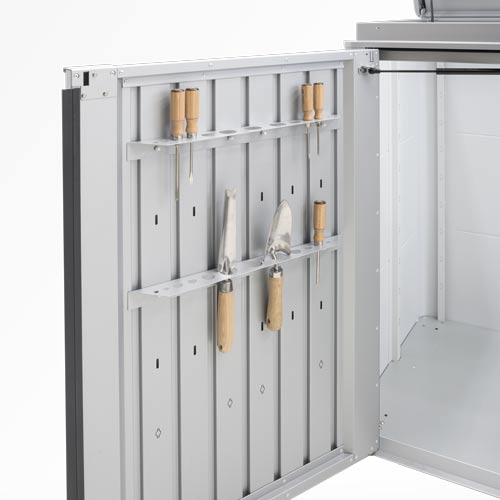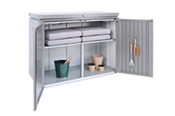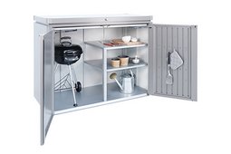 Dzięki podwójnym drzwiom i otwieranej pokrywie możliwości HighBoard są prawie nieograniczone: czy to jako miejsce do przechowywania poduszek i sprzętu ogrodowego, czy jako idealne przedłużenie kuchni na świeżym powietrzu, wszystko jest chronione przed warunkami atmosferycznymi i starannie schowane. Jego elegancki design został opracowany przez projektantów przemysłowych i jest gwarantowanym podkreśleniem każdego patio.