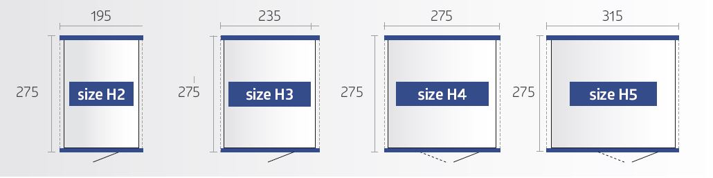 | H5 | 275 x 315 x 222* | 252 x 292 x 210 | 257 x 297 | 330,2 | 9003414 83069 1 | 9003414 88069 6 | 9003414 84069 0 |