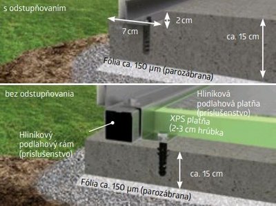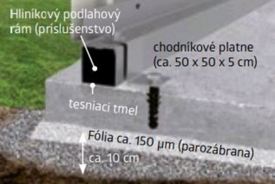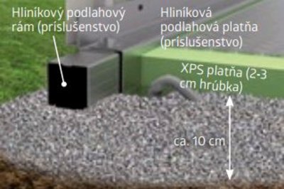 S Hliníkový podlahový rám hliníkovým podlahovým rámom (príslušenstvo) môžete domček na náradie postaviť aj na štrkové lôžko a bezpečne vetruodolne ukotviť (zemné kotvy sú priložené). Hliníková podlahová platňa slúžia ako funkčná podlaha a podkladajú sa platňami z tvrdeného polystyrénu (nie sú predmetom dodania).
